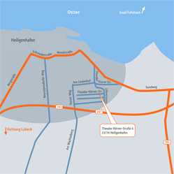» in Heiligenhafen links auf die Bergstraße abbiegen, weitere Details siehe Anfahrtskizze rechts