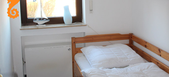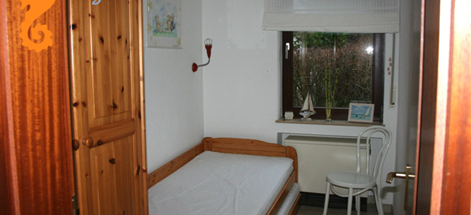 Zwei Schlafräume: 1 Elternschlafzimmer mit Doppelbett (160 cm breit), 1 Kinderzimmer mit Tandembett (90 x 200 cm)